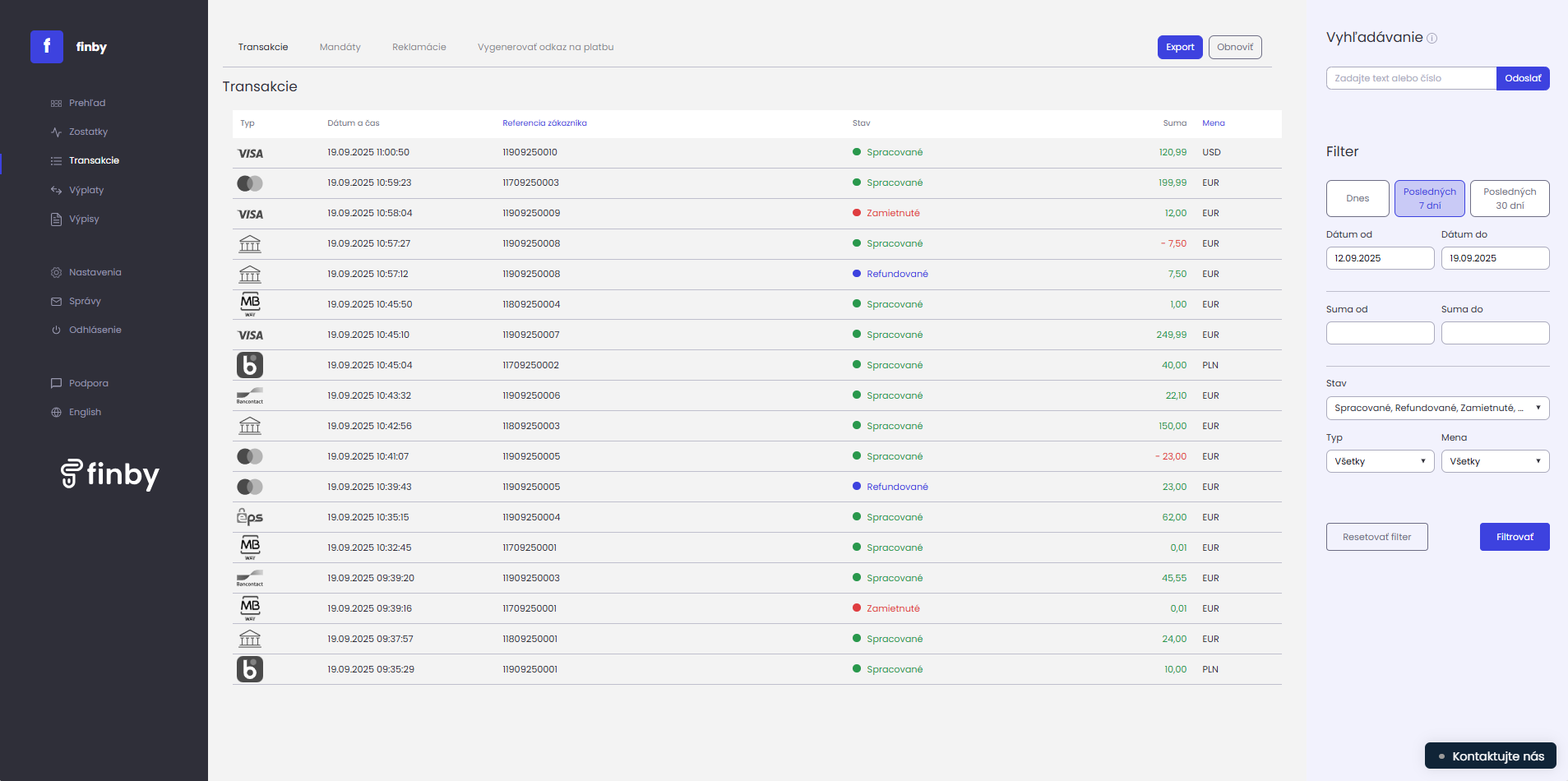 Spravujte transakce podle projektů, zemí a platebních metod.