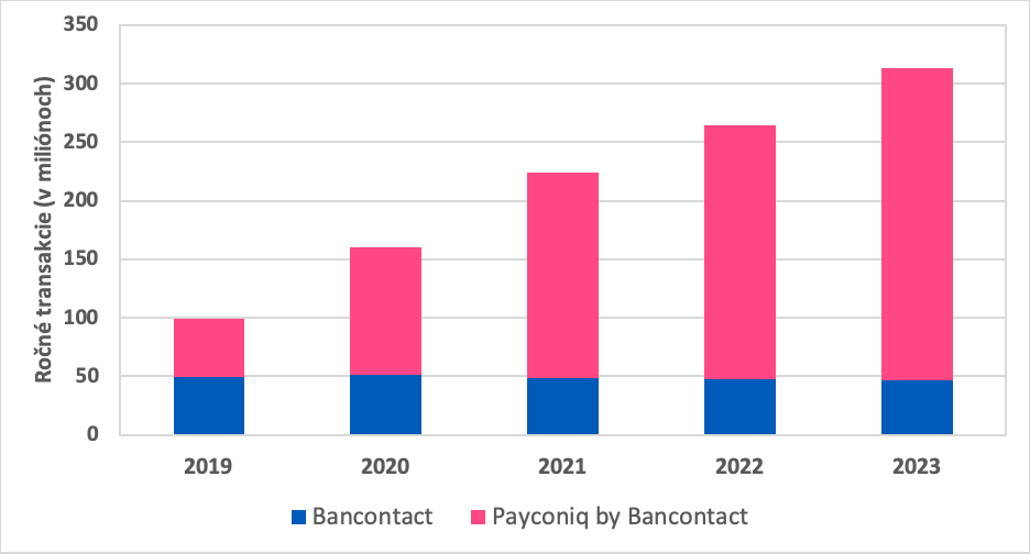 Graf: Rychlý růst Payconiq ve srovnání s pomalým poklesem Bancontact